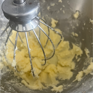 In einer zweiten Rührschüssel die restliche Butter schaumig schlagen. 100 Gramm Zucker und ein Päckchen Vanillezucker hinzugeben und weiter schlagen. Eier unterschlagen und zum Schluss 150 Gramm Mehl und Backpulver unter sieben und zu einer glatten Masse verrühren.